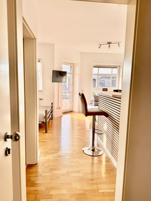 Mit einer Größe von 37qm und einem offenen lichtdurchfluteten Raum bietet die Wohnung ein gemütliches und