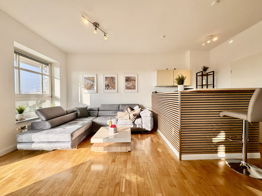 zusätzlicher Schlaffunktion (1,40m) bietet ausreichend Platz und Comfort für gemütliche Stunden. Im mit Parkettboden ausgestatteten Wohnzimmer befindet sich auch ein modernes bequemes und mit