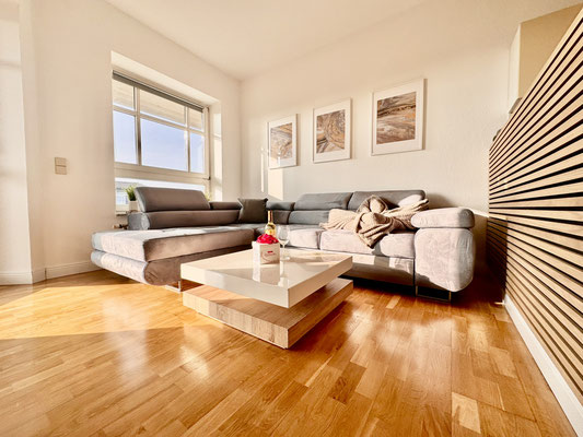 Sie ist mit einem Smart TV mit allen Zugängen für Netflix und Co. ausgestattet. Die große Wohnlandschaft mit